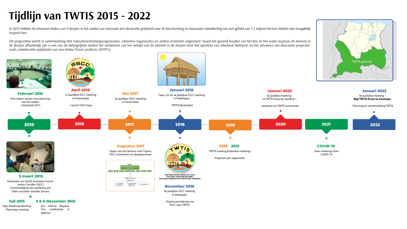 In november 2018 is de naar SSCC officieel vervangen voor TWTIS oftewel Tarëno Wajana Tinonokon Ikurumane Soire weinjo in het Trio en Tarëno Wajana Titonkom Ïkulunmahe Soltüna in het Wayana; wat vrijvertaald betekent ‘Tarëno Wayana Natuurbeschermning in Zuid Suriname in Ontwikkeling’ betekent.